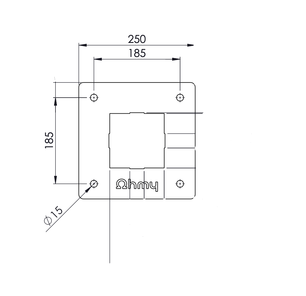 Voet: 250mm x 250mm x 5mm