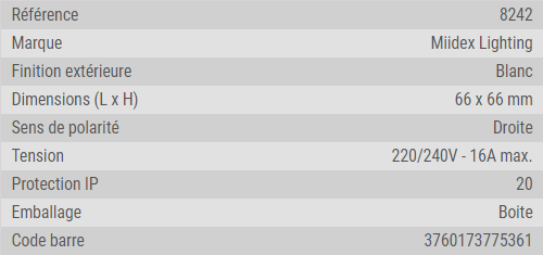 | Spanning: 220/240V - 16A max. |